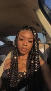 If you’re a fan of the messy bun look, then this is a great way to style your box braids. This is a beautiful, carefree look; add a few gold beads for embellishment.