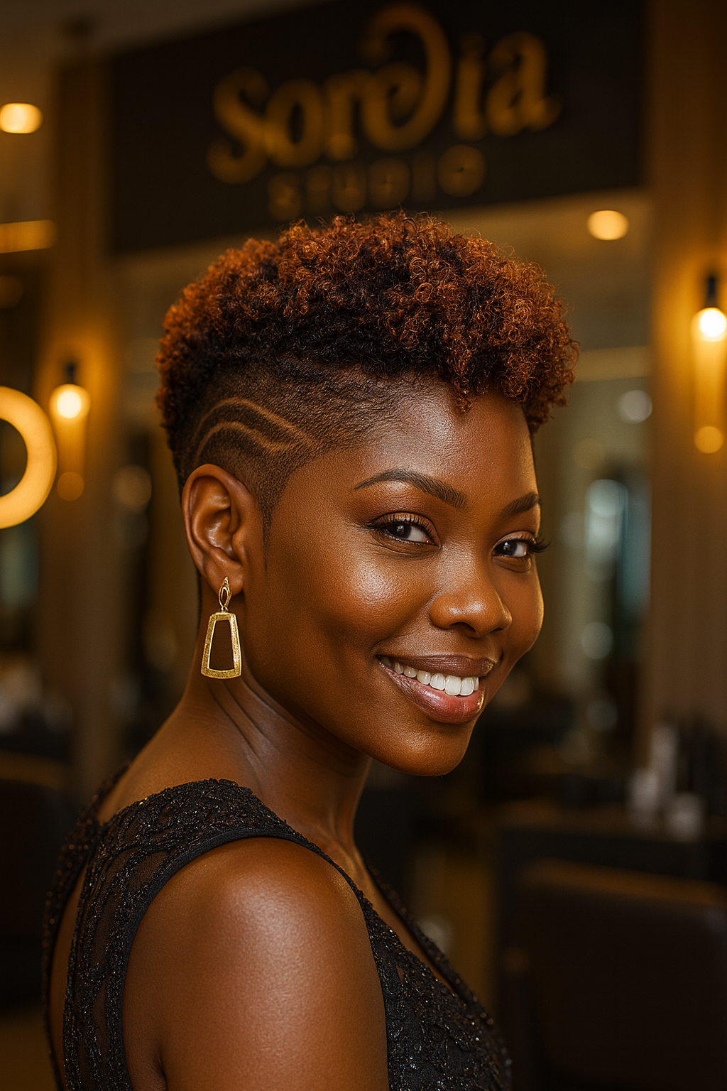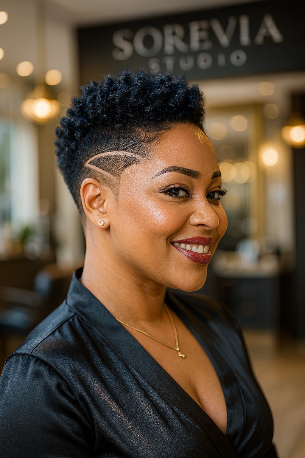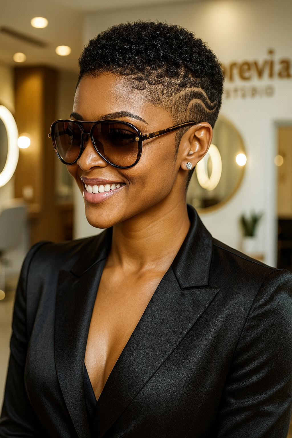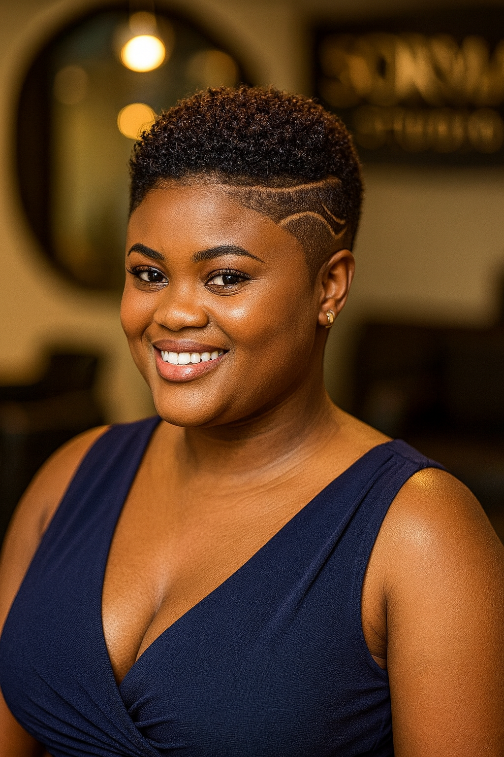 Women who want a haircut that merges precision with creativity. The defined fade with wave designs suits those who need a clean, professional look but still enjoy bold, expressive details. It’s especially flattering on textured hair, where the natural crown contrasts beautifully with the sharp fades and flowing etched designs.