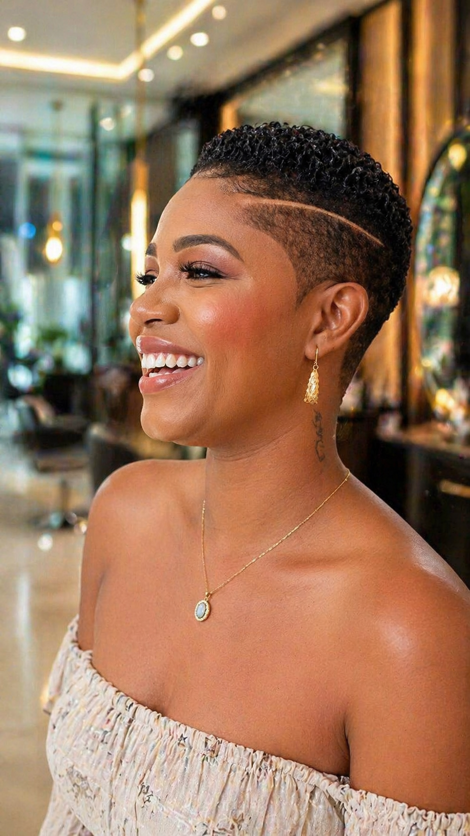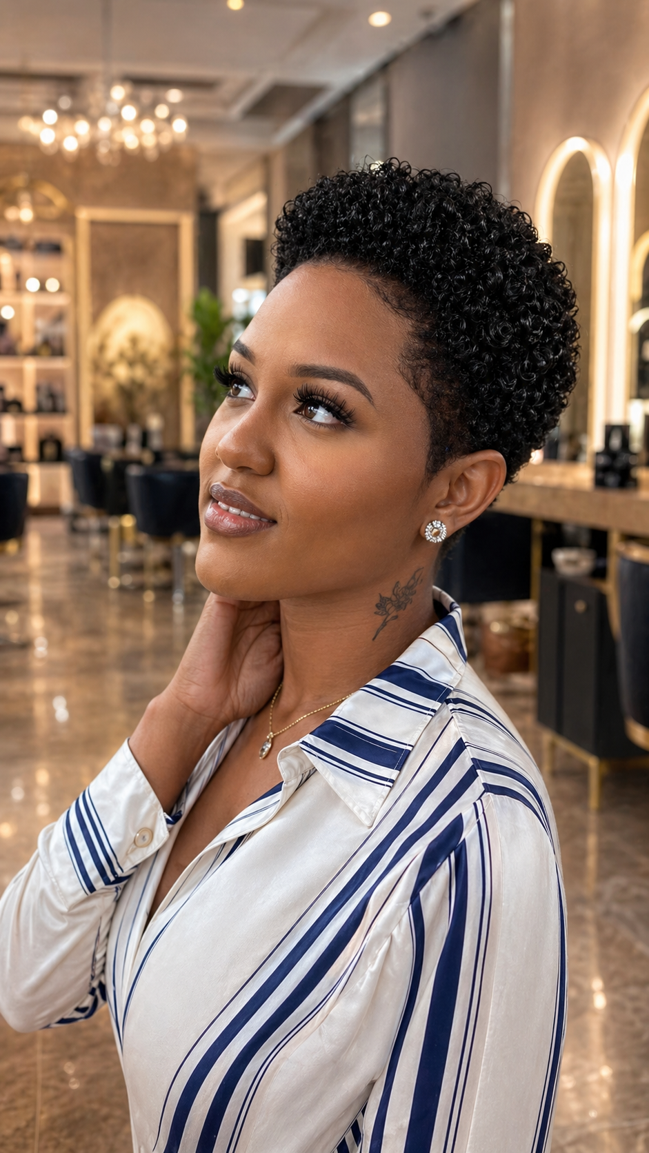 Another reason this look works so well is the ease of care. Short Afro hair is simpler to wash, moisturize, and refresh, which helps the curls stay healthy and defined. A lightweight leave-in conditioner or soft curl cream can help support the texture without making the hair feel heavy. When the hair is well nourished, the style naturally carries a softer and more polished presence.