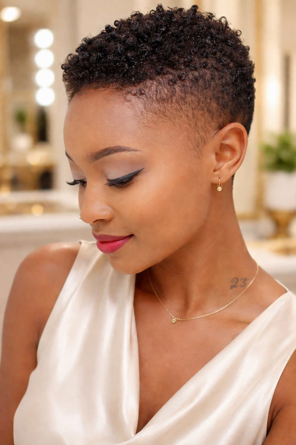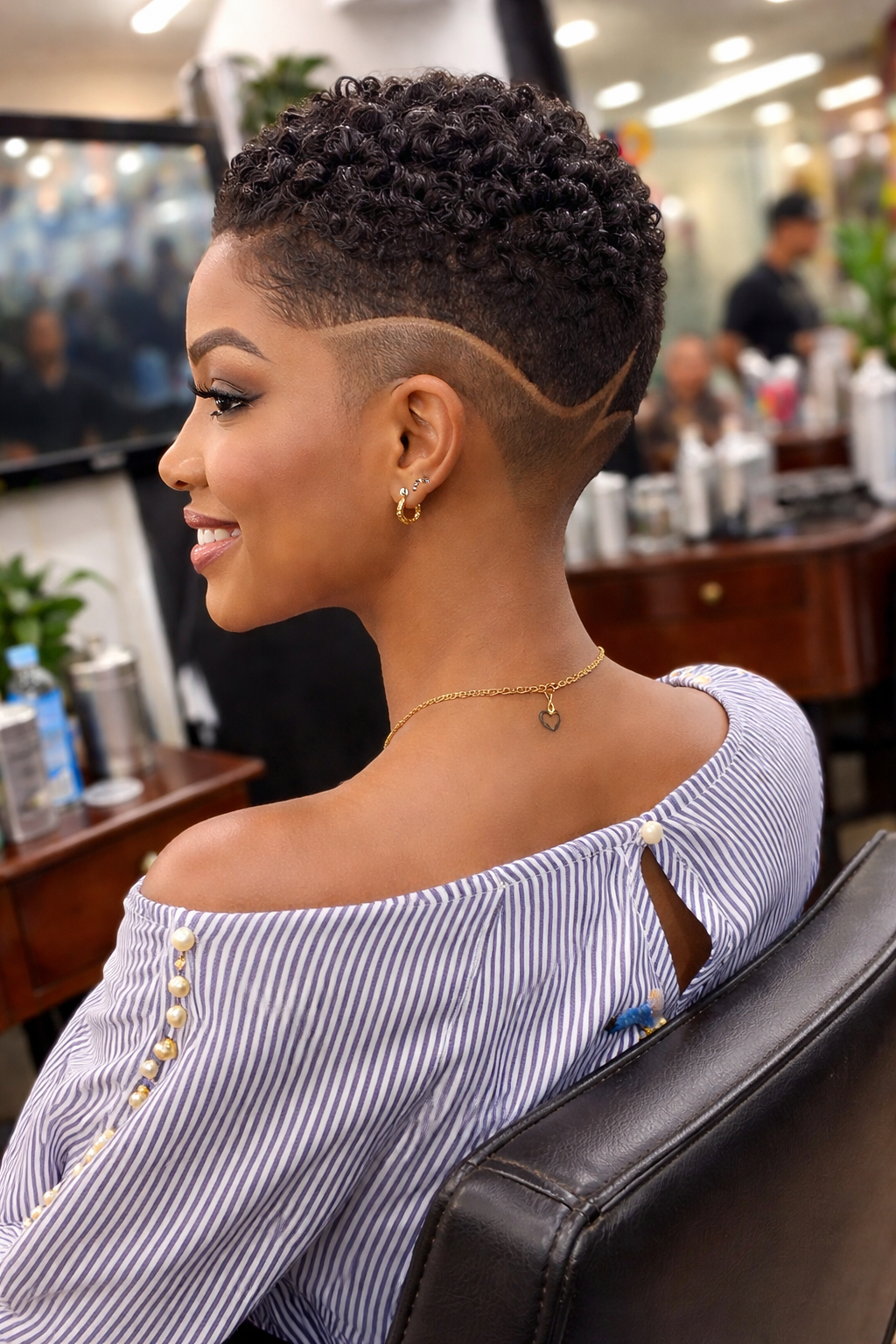 Another reason these looks are so appealing is their easy maintenance. Short Afro hair is simpler to cleanse, moisturize, and refresh, which helps the curls stay healthy and defined. A lightweight leave-in conditioner or soft curl cream can help support the texture without making the hair feel heavy. When the hair is well cared for, the whole style carries a softer and more polished presence.