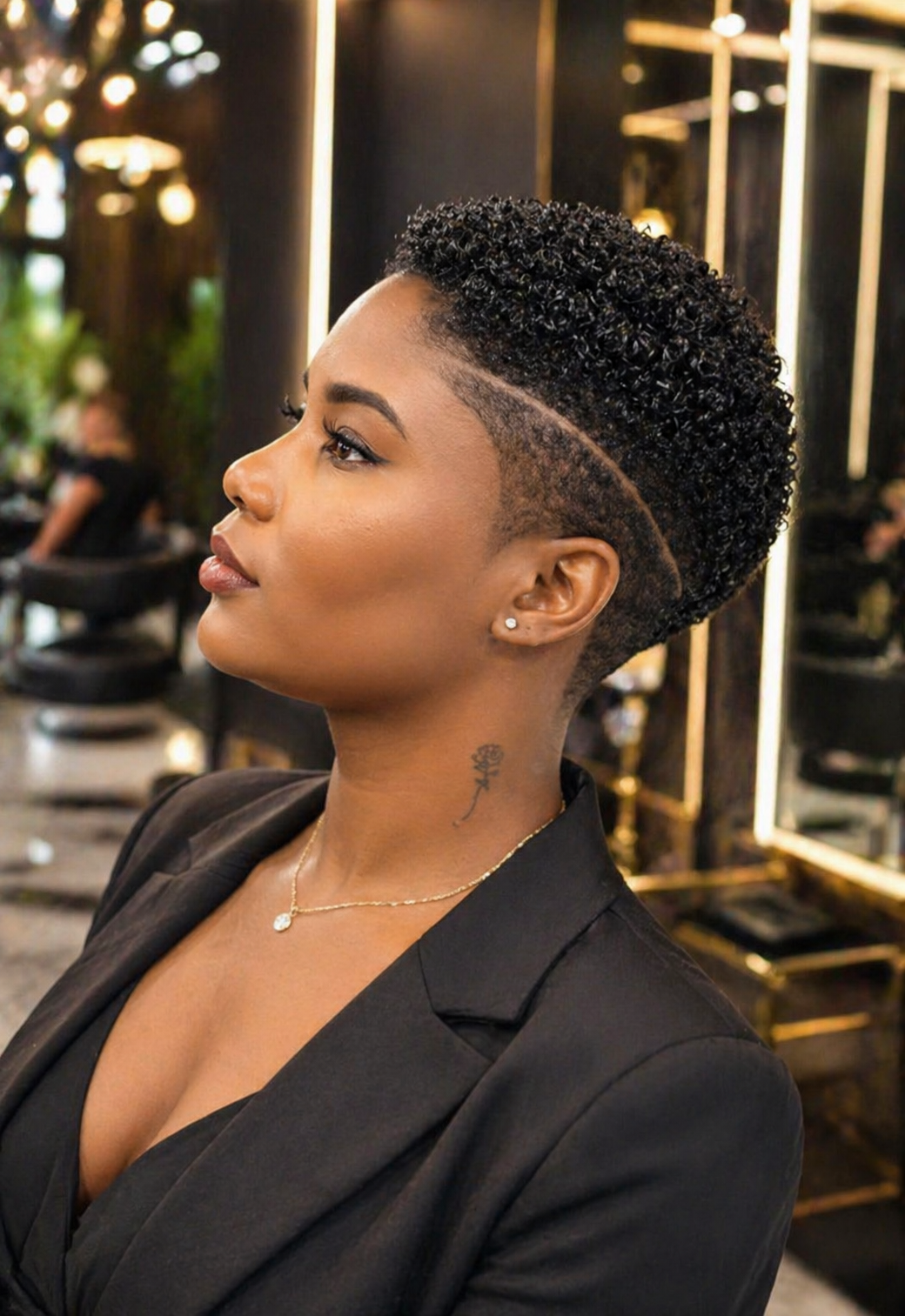 Another reason this style works so well is its easy maintenance. Short Afro hair is simpler to cleanse, moisturize, and refresh, which helps the curls stay healthy and defined. A lightweight leave-in conditioner or soft curl cream can help support the texture without making the hair feel heavy. When the hair is properly nourished, the whole look appears cleaner and more refined.