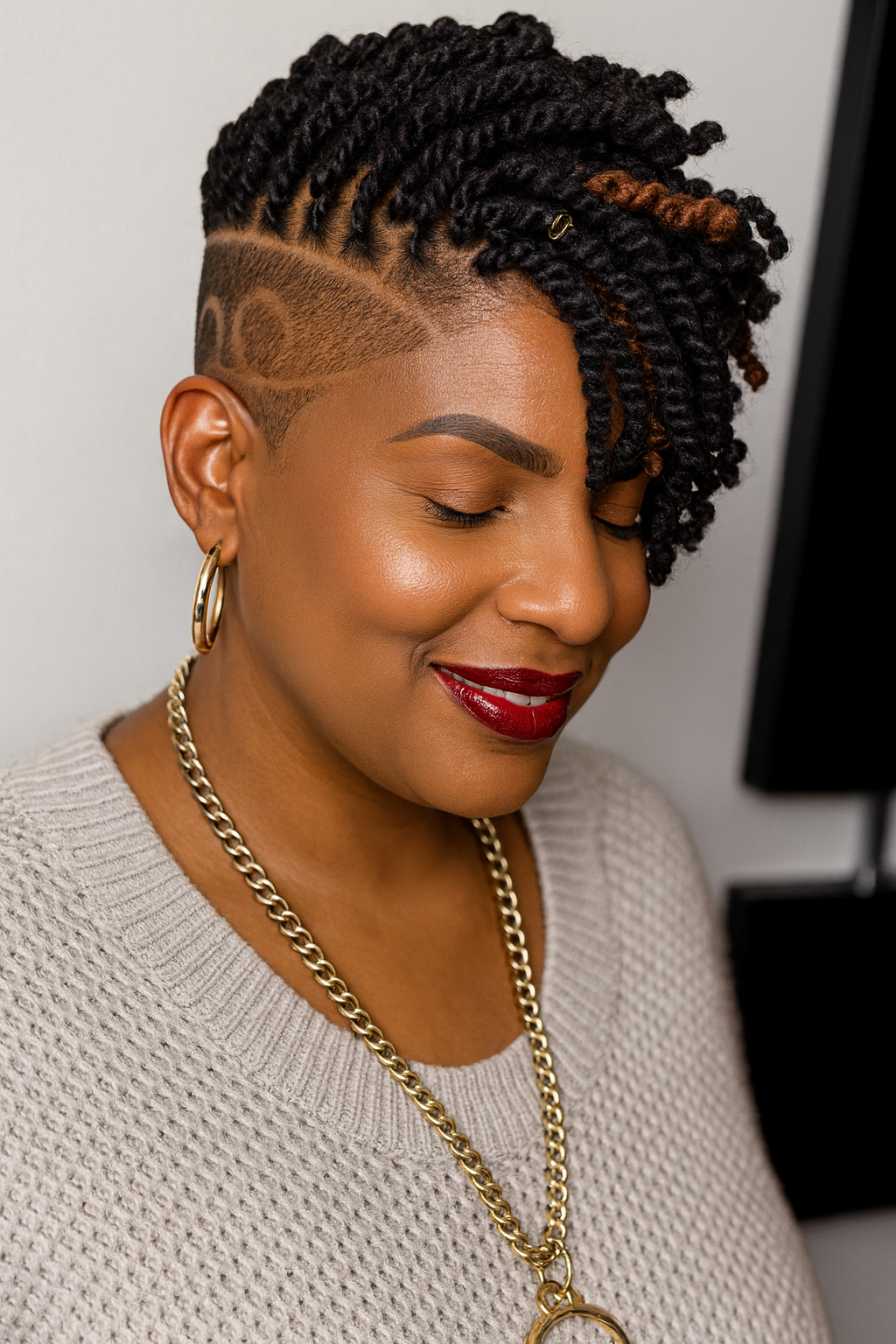 – Afro Fade with Line Design: Structured sides enhanced with artistic etching for bold individuality