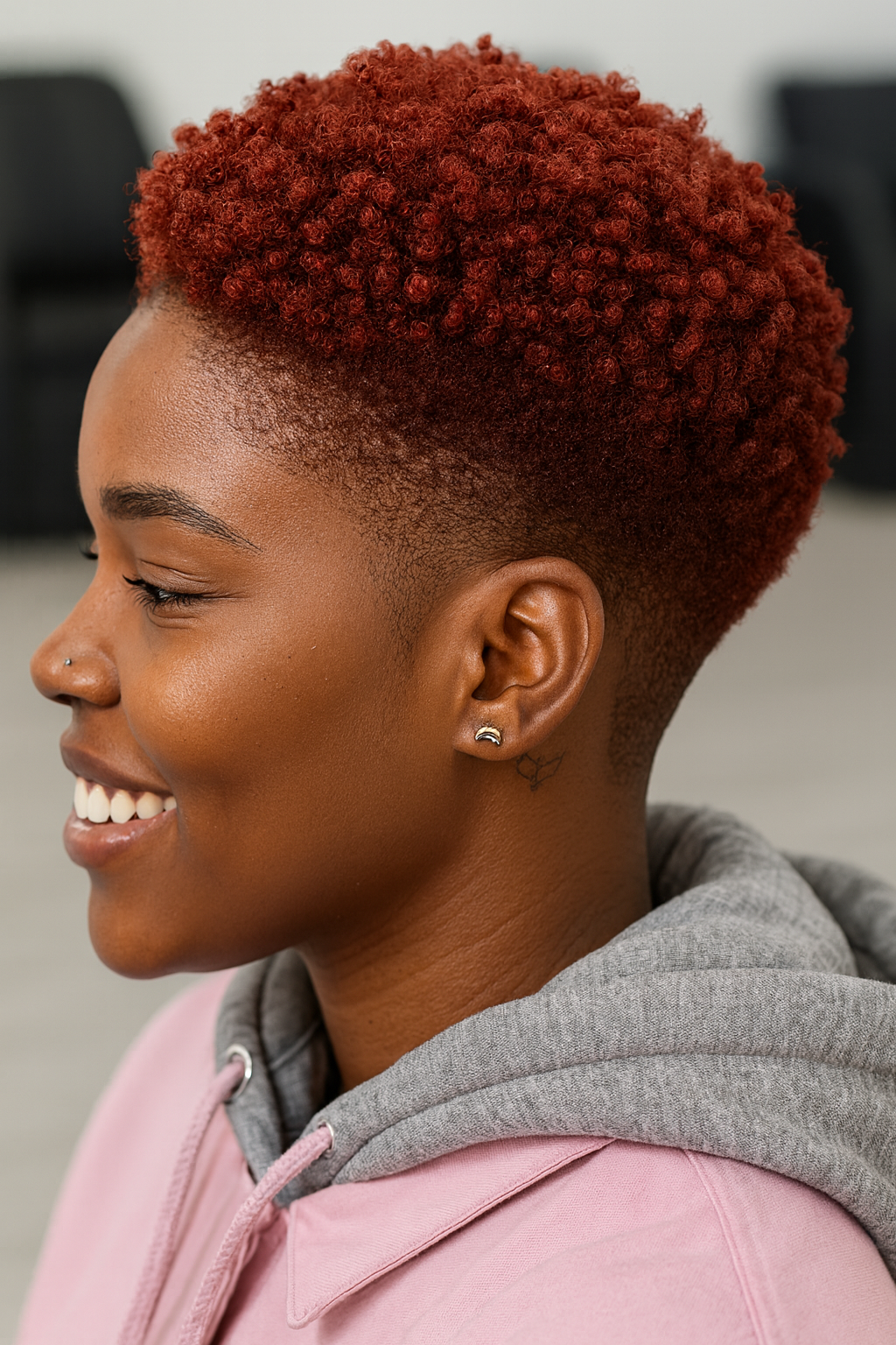 The short Afro haircuts with gentle fade of 2025 bring together the beauty of natural texture and the precision of subtle shaping. These styles are designed for women who love softness with structure—cuts that enhance natural curls while adding just enough fade to create polish and balance. The gentle fade softly blends the sides and neckline, allowing the crown to remain full and expressive. The result is a modern, low-maintenance look that radiates confidence, femininity, and natural charm.